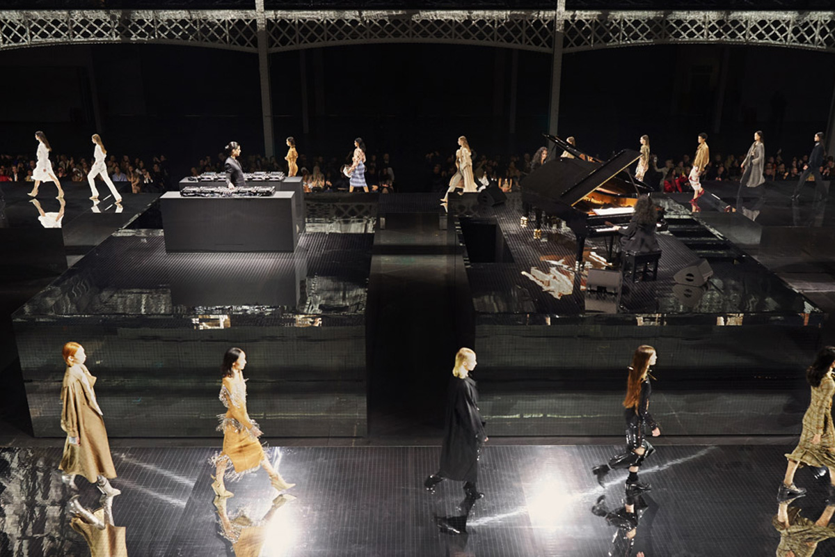Parement du catwalk, des escaliers et du podium photo en miroirs.